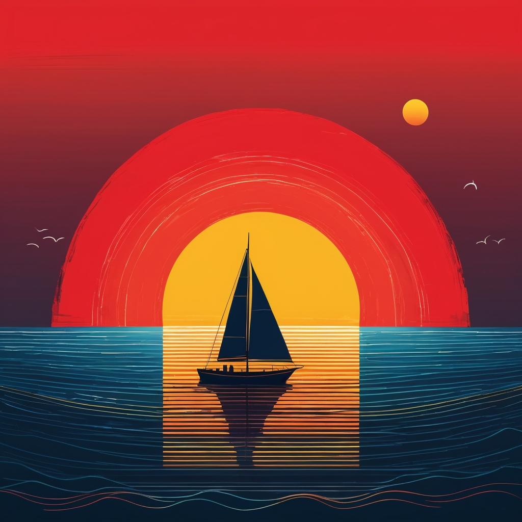 這幅作品以簡約的線條和鮮明的色彩對比,生動地描繪了一艘帆船在海上航行的景象,並在天空中放置了一個明亮的紅色太陽。這種簡單而生動的表達方式,讓人回想起童年時代對大自然的純真欣賞和對未知世界的無限想像。作品中使用的紅藍對比色不僅增添了視覺上的衝擊力,還表達了自由和探索的主題。這種風格讓人聯想到Paul Klee的藝術作品,其中特有的童趣表達和深刻的情感意涵交織在一起。不妨在這幅作品中加入更豐富的細節,如海浪的動態和時間轉換中的天空色彩變化,來增強作品的層次感和情感共鳴。這些細節不僅能夠豐富畫面,也能夠讓觀者在欣賞的過程中,感受到更多來自大自然的靈感和力量。同時,保留作品原有的簡單與純真,讓這幅畫在藝術表達上達到一個新的高度。